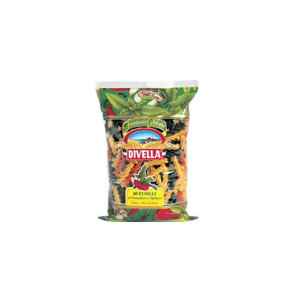 Ingredients: durum wheat semolina, dried tomatoes 4%, dried spinach 3%, water.