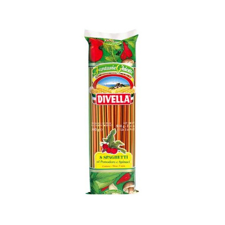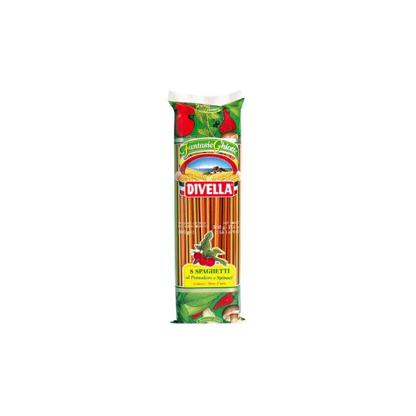Sudedamosios dalys: kietųjų kviečių manų kruopos,džiovinti pomidorai 4%, džiovinti špinatai 3 %, vanduo.