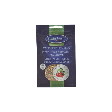Vidusjūras garšvielu maisījums "Santa Maria". Šis maisījums ir īpaši piemērots dārzeņu ēdieniem, picām, karstajām sviestmaizēm, makaronu ēdieniem un sautējumiem.