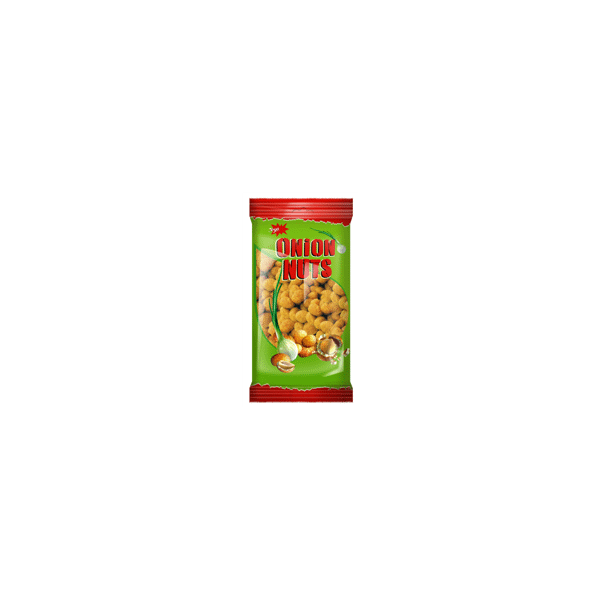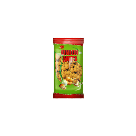 Sastāvdaļas: ZEMESRIEKSTI 56%, kartupeļu ciete, palmu eļļa, modificēta ciete, cukurs, sīpolu garšvielu maisījums 1,2% (sīpoli 0,3%, sāls, aromāta un garšas pastiprinātāji: mononātrija glutamāts, dinātrija ribonukleotīdi; maltodekstrīns, rauga ekstrakts, ķiploku pulveris, pētersīļi, rapšu eļļa, pretsalipes viela silīcija dioksīds, skābuma regulētājs pienskābe, antioksidants koncentrēts tokoferolu ekstrakts, kurkumas ekstrakts, aromatizētājs), jodēts sāls, irdinātājs nātrija karbonāts, kurkuma, baltie pipari, skābuma regulētājs citronskābe, krāsviela tartrazīns (var negatīvi ietekmēt bērnu aktivitāti un uzmanību). Satur ZEMESRIEKSTUS. Var saturēt GLUTĒNA, PIENA, SELERIJU, SINEPJU, MANDEĻU, INDIJAS RIEKSTA un LAZDU RIEKSTU pēdas.